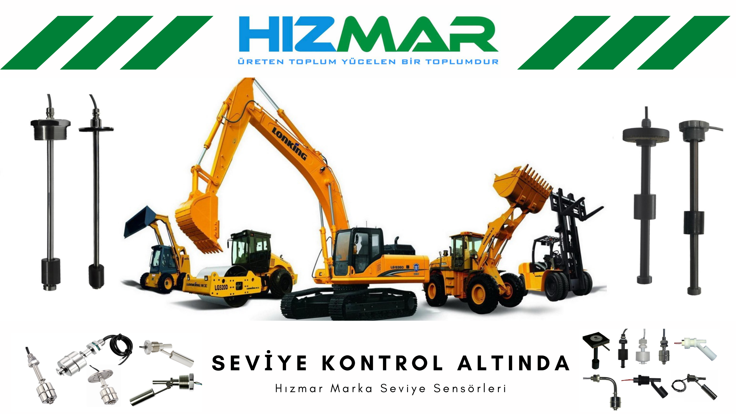 Yerli üretim Hızmar marka sıvı seviye sensörleri İş makinelerinde bulunan yağ tankı, su tankı, pis su tankı, yakıt tankları, sıvı olan her tank ve depolara uyumludur.