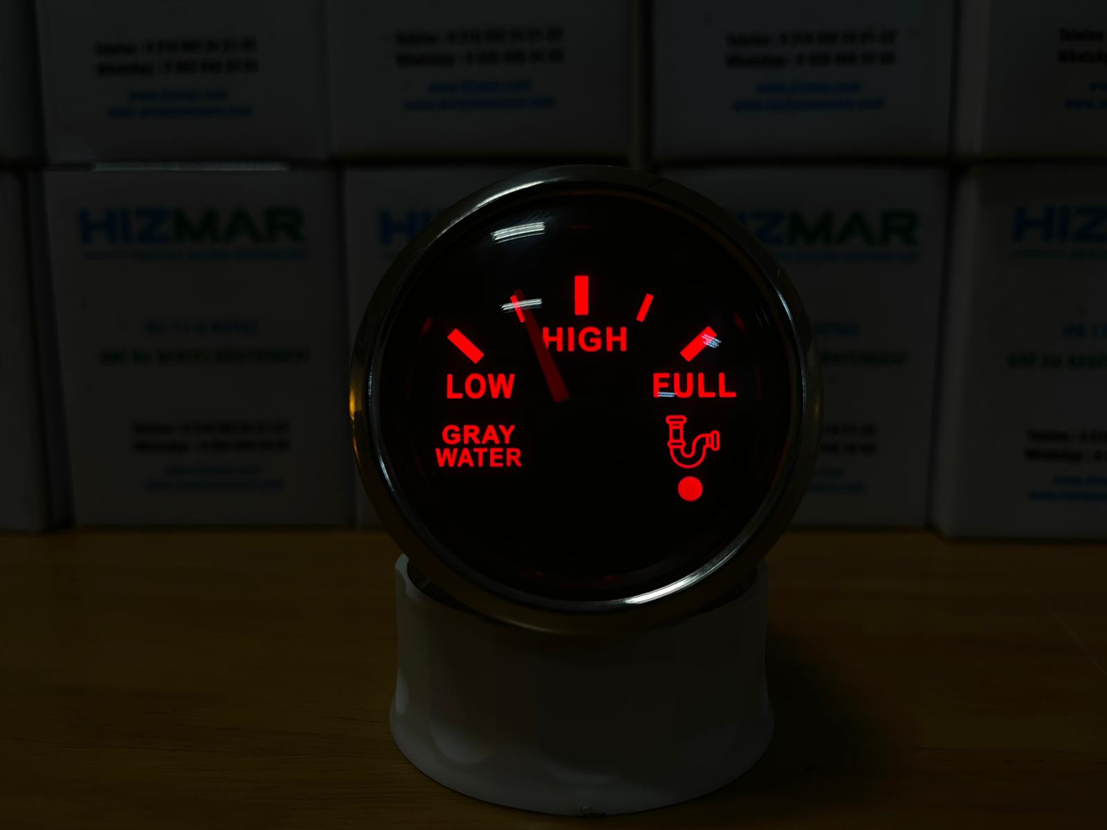 Tekne ve Yat Gri Su Seviye Göstergesi , Karavan Gri Su Seviye Göstergesi , Endüstri ve Sanayide Kullanılan Gri Su Tank Depo Seviye Göstergeleri, İbreli Yuvarlak Gri Su Seviye Göstergesi , Siyah İbreli Gri Su Seviye Göstergesi
